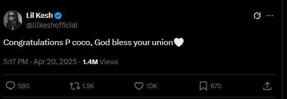 Just days earlier, Lil Kesh had made headlines when a throwback tweet about Priscilla resurfaced online, stirring conversations about their past. His noticeable absence from both wedding events only fueled the buzz—making his eventual congratulatory message all the more talked about.