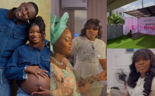 Nollywood actress Funke Akindele has embraced her “grandma duties” with joy, as she was seen caring for comic actor Kamo State’s wife, Esther, ahead of their baby’s christening ceremony.