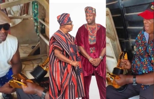 Award-winning actor and filmmaker Femi Adebayo has melted hearts online after honoring his father, veteran actor Adebayo Salami, by presenting him with his Africa Magic Viewers’ Choice Awards (AMVCA) trophies.