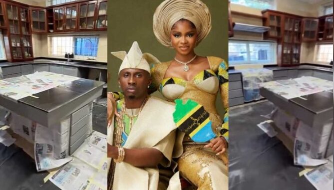 Priscilla Ojo, daughter of Nollywood star Iyabo Ojo, has shared a heartwarming video of herself renovating the kitchen in her husband Juma Jux’s home.