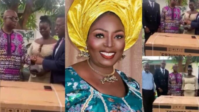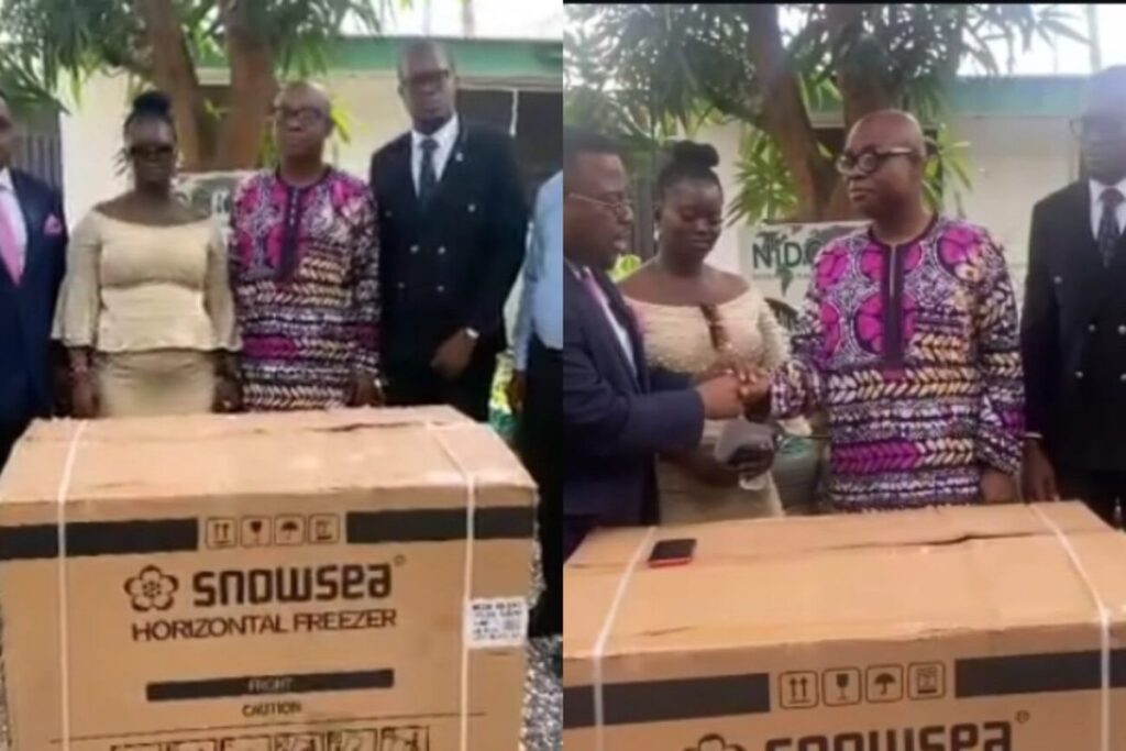 Jumoke George Breaks Down in Tears as Daughter Adeola Receives Deep Freezer and Cash Gift to Launch Her Business (Photos)