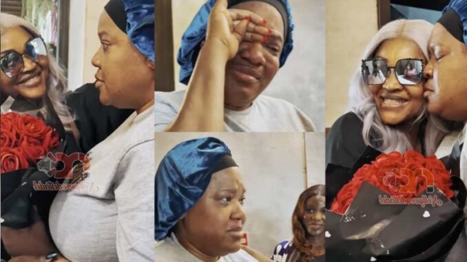 Nollywood star Mercy Aigbe has stirred reactions online after surprising her friend and colleague, Toyin Abraham, in a heartwarming gesture.