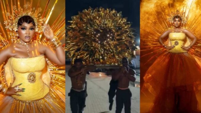 In a clip making rounds online, Aigbe was captured arriving at the event in a grand style. The movie star was carried in a gleaming golden palanquin, lifted by men.