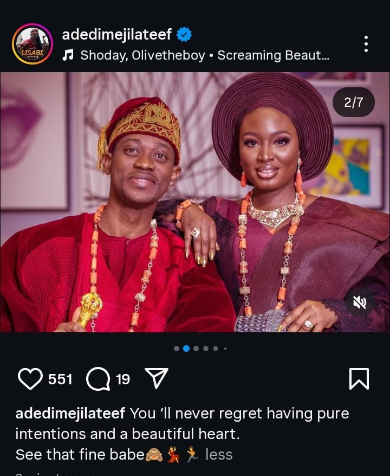 Back in March, Lateef reassured Mo Bimpe of his undying love and declared her the greatest gift of his life. He thanked God for her daily and revealed that she inspires him more, and makes him want to be a better person.