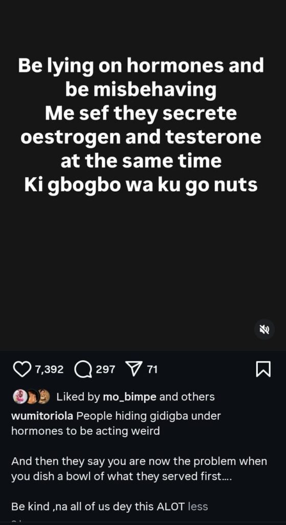 Wumi further emphasised how they hide under hormones to act weird and then play victim when you give them a taste of their own medicine.