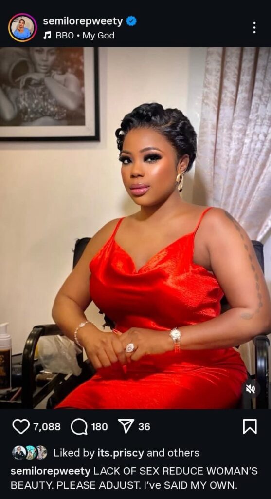 Nollywood actress Kudirat Ogunro, popularly known as Semilore Pweety, has stirred reactions online with a bold revelation about the connection between intimacy and a woman’s appearance.