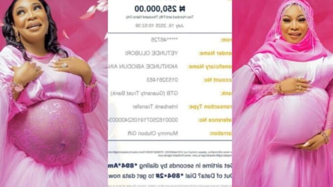 Taking to Instagram, Bimpe posted a screenshot of the financial alert she received, revealing that the prophetess sent it as a push gift. She shared how Mary Olubori had been by her side throughout the pregnancy—offering prayers, emotional support, and unexpected financial blessings.